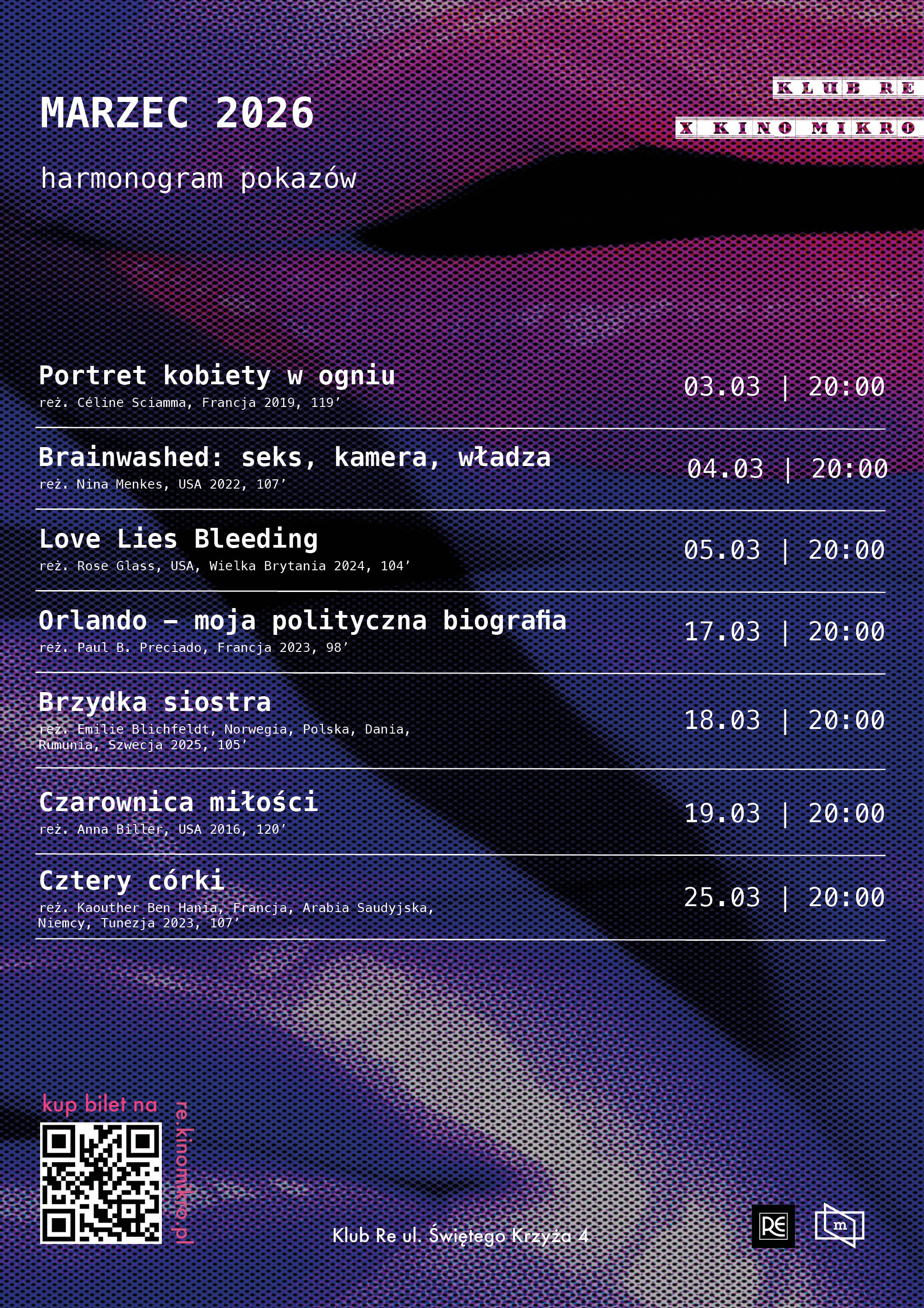 W marcu w Klubie RE zaprezentujemy wam kino, które podważa schematy, rozsadza stereotypy i bierze na warsztat kobiecy portret. Eseje filmowe, fabuły i dokumenty o pożądaniu, władzy, gniewie i tożsamości, które redefiniują ekranowy wizerunek kobiet: szalone, zabawne, bezkompromisowe i, co najważniejsze, dające do myślenia.
